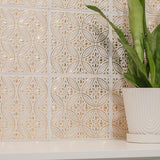 Upgrade your space with Wall Wear Peel and Stick Metal Tiles – Pastel Painted Gold, the perfect blend of elegance and convenience. Each pack includes 10 metal tiles (8" x 8") crafted from water-resistant aluminum for durability and easy maintenance.