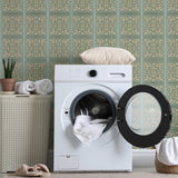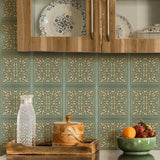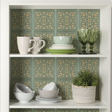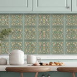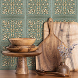 The Rustic Farmhouse design features a soft green background with intricate gold ornamental detailing, creating a warm, vintage-inspired look that complements farmhouse, rustic, and traditional interiors.